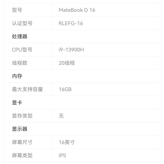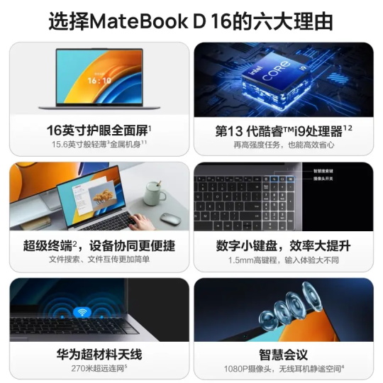 MateBook D16 I9 華為/Huawei MateBook D16 便攜式計算機(jī) 13代 I9/16G/1T固態(tài)